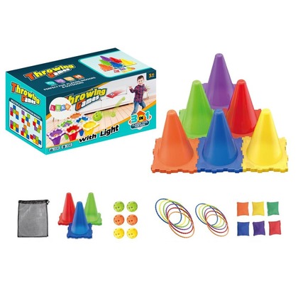 Zestaw gier zręcznościowych sportowych 3w1 to wszechstronny zestaw, który dostarcza mnóstwo aktywnej i kreatywnej zabawy zarówno w domu, jak i na podwórku. Składa się z pachołków, które pełnią rolę celu, oraz z trzech różnych przedmiotów do rzucania: obręczy, woreczków i piłeczek. Dzięki tej różnorodności, zestaw umożliwia wiele form zabawy, od klasycznych gier zręcznościowych po wymyślanie własnych wyzwań i zadań. Pachołki mogą być ustawiane w różnych odległościach, co pozwala na dostosowanie poziomu trudności do wieku i umiejętności uczestników. Obręcze, woreczki i piłeczki różnią się wagą i sposobem rzucania, co pomaga dzieciom rozwijać koordynację ruchową, precyzję oraz umiejętność celowania. Dodatkowo, rywalizacja w rzucaniu do celu nie tylko wprowadza elementy zdrowej konkurencji, ale także uczy cierpliwości i koncentracji. Zestaw idealnie nadaje się do zabawy na świeżym powietrzu, gdzie dzieci mogą swobodnie biegać i rywalizować w różnych grach, ale jest także świetnym rozwiązaniem do użytku w domu, zwłaszcza w chłodniejsze dni. Dzięki kompaktowemu rozmiarowi i prostemu montażowi, można go łatwo przenosić i rozstawiać w dowolnym miejscu. To doskonała opcja dla dzieci w każdym wieku, rozwijająca ich sprawność fizyczną, współpracę i umiejętności społeczne. Wymiary opakowania: 26,5cm x 14cm x 14cm Posiada certyfikat CE, ponadto jest zgodny z normą EN71. Przeznaczony dla dzieci powyżej 3 roku życia.