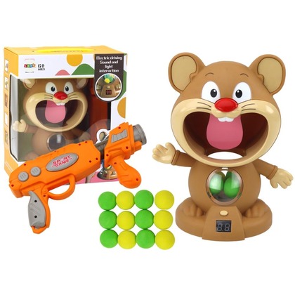 Gra Zręcznościowa Strzelanie Do Chomika Pistolet Kulki Gra zręcznościowa - Strzelanie do Chomika to rewelacyjna gra nie tylko zapewni Ci wesołą i kreatywną rozrywkę, ale także rozwijać będzie Twoje umiejętności cierpliwości oraz koordynacji oko-ręka. W grze Twoim celem jest trafienie w pysk chomika, zbierając przy tym jak najwięcej punktów. Aby uczynić zabawę bardziej ekscytującą, istnieje możliwość włączenia trybu ruchomego, w którym chomik porusza się po powierzchni, utrudniając trafienie. To doskonałe wyzwanie dla Twojej zręczności i precyzji. Podczas rozgrywki towarzyszyć Ci będzie przyjemna muzyka, która dodatkowo umili czas spędzony przy zabawie. Dzięki niej atmosfera gry stanie się jeszcze bardziej przyjemna i relaksująca. Zestaw do gry jest bardzo prosty w użyciu. Wystarczy załadować pistolet miękkimi kulkami, a następnie celować w pysk chomika. Kiedy trafisz w język chomika, gra wyda dźwięk potwierdzający trafienie, a na małym wyświetlaczu LCD zobaczysz swoje osiągnięcia zapisane w postaci punktów. W zestawie znajdziesz również pistolet oraz specjalne miękkie kule, które umożliwią Ci długie godziny zabawy. Chomik zasilany jest na baterie 3x 1.5V AA, które nie są elementem zestawu. Wymiary chomika: 26cm x 20,5cm x 15cm Wymiary pistoletu: 30cm x 16cm x 6cm Wymiary opakowania: 31cm x 26cm x 16,5cm Posiada certyfikat CE, ponadto jest zgodny z normą EN71. Przeznaczony dla dzieci powyżej 6 roku życia.