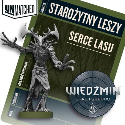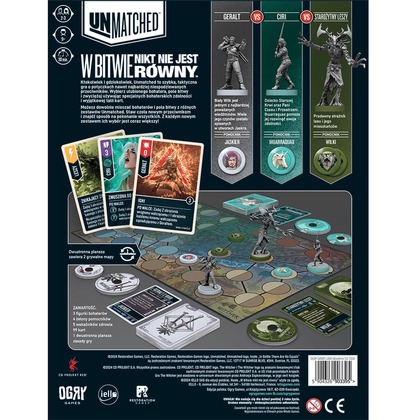 UWAGA! Do zestawu dołączona jest unikalna i limitowana figurka Geralta w balii. Figurka kolekcjonerska jest dostępna tylko w tym druku produkcyjnym i nie będzie jej można zdobyć przy kolejnych dodrukach. Oferta obowiązuje do wyczerpania zapasu.   Unmatched to gra figurkowa o pojedynkach postaci z różnych krain i epok, od herosów znanych z mitów i legend, do bohaterów książek i filmów. Każdy z nich dysponuje własną talią kart, która wyraża jego wyjątkowy styl walki. Możesz mieszać i zestawiać bohaterów z dowolnych zestawów Unmatched, ale pamiętaj: ostatecznie zwyciężyć może tylko jeden!   Dodatek Stal i Srebro zawiera bohaterów: Geralt z Rivii - Wiedźmin Ciri - Lwiątko z Cintry Starożytny Leszy - Duch Lasu   A dodatek Upadek Królestwa zawiera: Filippa Eilhart - Czarodziejka i intrygantka Yennefer i Tris - Lojalne przyjaciółki i odwieczne rywalki Eredin - Król Dzikiego Gonu