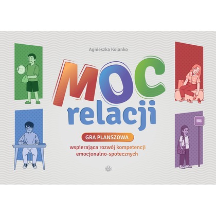 „Moc relacji” to gra planszowa opracowana przede wszystkim dla uczniów z trudnościami w nabywaniu kompetencji społeczno-emocjonalnych. Doskonale sprawdzi się w pracy specjalistów prowadzących zajęcia z dziećmi w wieku szkolnym: trenerów TUS, wychowawców, pedagogów i psychologów szkolnych.