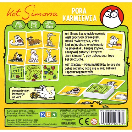 Kot Simona i przyjaciele szukają wielkanocnych przekąsek. Wskaż zwierzątko, które jest najszybsze w polowaniu na smakołyki. Reaguj szybko, zdobywaj punkty i krzycz: "Kot Simona!", gdy zobaczysz tego łakomczucha.
