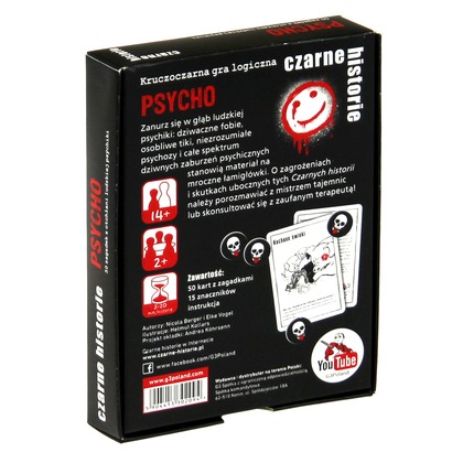 Zanurz się w głąb ludzkiej psychiki: dziwaczne fobie, osobliwe tiki, niezrozumiałe psychozy i całe spektrum dziwnych zaburzeń psychicznych stanowią materiał na mroczne łamigłówki. O zagrożeniach i skutkach ubocznych tych Czarnych historii należy porozmawiać z mistrzem tajemnic lub skonsultować się z zaufanym terapeutą!