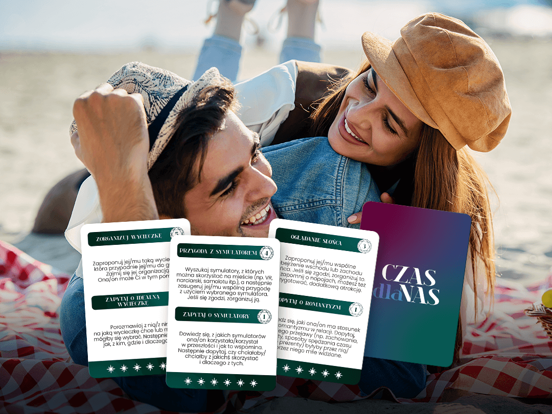 Pragniecie spędzać ze sobą jeszcze więcej czasu, który dostarczy Wam pozytywnych emocji? Chcecie robić wspólnie więcej rozmaitych rzeczy i tworzyć wspomnienia, które zostaną w Waszej pamięci na długo? Czas wzajemnie zmotywować się do działania i spróbować nowych aktywności! Gra Czas dla nas: Randki i przygody zachęci Was do opuszczania domu i aktywniejszego spędzania czasu na wiele rozmaitych sposobów!   Świat ma Wam do zaoferowania niezapomniane doznania, wyjątkowe wyzwania, odkrywanie nieznanych Wam zakątków, czy spontaniczne powroty do miejsc i aktywności, które uwielbiacie. Ta gra zachęci Was do opuszczania domu i aktywniejszego spędzania czasu na wiele rozmaitych sposobów!   Czas dla nas to rewolucyjna seria gier dla dwojga, która zapewni Wam rozrywkę na kilka dni, tygodni, a nawet miesięcy! Jak to możliwe? Pudełko zawiera 150, przygotowanych przez psychologów, unikalnych zadań i wyzwań, spośród których każdego dnia spróbujecie wykonać chociażby jedno!   Gra karciana Czas dla nas: Randki i przygody:   Wyzwoli w Was więcej energii do działania poprzez angażujące zadania. Pomoże Wam w poszukiwaniu nowych ciekawych aktywności i zajęć. Zmotywuje Was do wspólnego odkrywania nowych, ciekawych miejsc. Wskaże Wam to, co Was łączy i pomoże odkryć to, czego pragniecie razem doświadczać. Zainspiruje Was do wzajemnego inspirowania się. motywowania i partnerskiego współdziałania. Wzmocni w Was otwartość na bogactwo i różnorodność wrażeń, które świat ma Wam do zaoferowania. Utwierdzi w Was chęć przeżywania przygód i czerpania z nich emocji.