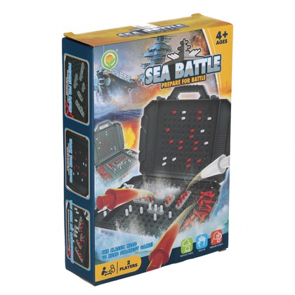 Zawartość zestawu: 2x tablica-podstawka do gry, 10 x statek, białe pionki, czerwone pionki.