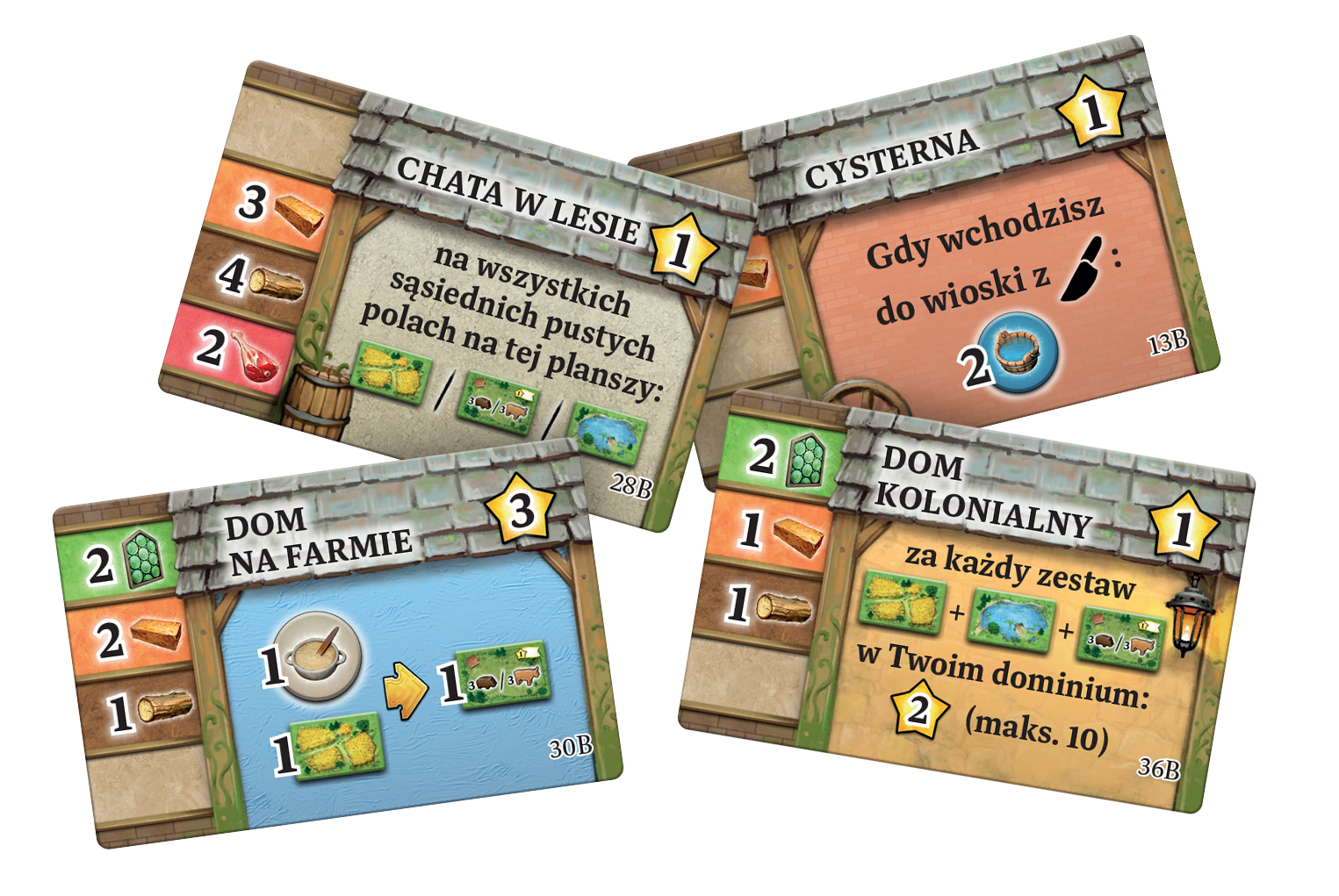 Najstarszy znany piec szklarski w Czarnym Lesie, będący częścią leśnej huty szkła, pochodzi z 1218 r. Przy hutach często powstawały małe leśne osady. Mieszkali tam dmuchacze szkła wraz z rodzinami, a także budnicy, którzy dostarczali węgiel drzewny i potaż, niezbędne do produkcji. Rozległe lasy pozwalały kontynuować prace, wytwórcy szkła mogli bowiem co kilka lat przenosić swoją działalność. Rodziny przekształcały wówczas opuszczone huty w domy i budynki gospodarcze, a rolnictwo i hodowla zwierząt zapewniały im utrzymanie. W rezultacie na terenie całego Czarnego Lasu zaczęły powstawać niezliczone majątki rolnicze, z których wiele przekształciło się w miasta i wsie. W grze Czarny Las zaczynasz z małym dominium potrzebujesz nowych budynków i zwierząt gospodarskich. Będziesz podróżować od wioski do wioski, aby skorzystać z pomocy najlepszych rzemieślników. Wybieraj odpowiednie budynki, dokładaj krajobrazy, produkuj szkło i poszerzaj swoje włości! Dwa koła zasobów pomogą Ci przechowywać dobra i prowadzić produkcję, a szeroki wybór budynków i ich różnych efektów zapewni mnóstwo ścieżek prowadzących do zwycięstwa. Na czym to polega? Każdy z graczy rozpoczyna z własną posiadłością obszarem, który będzie mógł rozbudowywać i wzbogacać o lasy, pola uprawne czy stawy. Oprócz tego każdy ma do dyspozycji własną planszę produkcyjną, na której znajdują się koła zasobów służące do zarządzania zgromadzonymi dobrami. Drugim istotnym obszarem jest plansza główna, gdzie znajdują się pola, na które możemy skierować swój pionek. Część z nich znajduje się przy warsztatach rzemieślników reprezentujące je płytki będą zmieniały swoje położenie w trakcie gry. Podczas swojej tury gracz może wydać specjalny zasób, by zamienić miejscami dwóch rzemieślników na planszy. Następnie przemieszcza swój pionek i wykonuje akcję przypisaną do przynajmniej jednego z pól, przy których się znajduje. W ten sposób będziemy gromadzić zasoby i wymieniać je na inne, a także zarządzać budynkami i terenami należącymi do naszych posiadłości. Gra kończy się, gdy przynajmniej jeden znacznik prowiantu na kole przyrządzania posiłków któregoś z graczy dotrze do odpowiedniego pola. Po rozegraniu ostatniej tury sumujemy punkty ze zgromadzonych zasobów, posiadłości, zwierząt i budynków, by wyłonić zwycięzcę. Dlaczego pokochasz tę grę? Gra świetnie sprawdzi się jako wprowadzenie do świata rozbudowanych strategii. Jej zasady są intuicyjne i względnie proste (zwłaszcza gdy opanujemy działanie kół zasobów), a całość opiera się na wymianie dóbr na inne, a potem jeszcze kolejne, coraz bardziej wartościowe. To nie lada gratka dla miłośników planszówek zaprojektowanych przez Uwe Rosenberga. Znajdziemy tu kultowe koła zasobów, które znamy z Ora et Labora czy Szklanego szlaku, tym razem połączone z mechaniką przydzielania robotników do pól na dynamicznie zmieniającej się planszy. Mnogość dostępnych elementów (od różnorodnych, dwustronnych budynków, poprzez warsztaty o zmiennej dostępności aż po nasze własne zarządzanie zasobami) sprawia, że poszczególne partie różnią się od siebie i pozwalają na wypróbowanie zupełnie nowych strategii. Oprócz klasycznego trybu gry instrukcja opisuje także specjalny wariant dwuosobowy wzbogacony o dodatkowy mechanizm zwiększający interakcję.