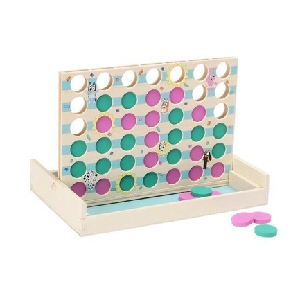 Fantastyczna drewniana gra strategiczna Cztery W Rzędzie jest idealnym źródłem rozrywki dla całej rodziny. Można ją złożyć, aby zabrać ze sobą i grać w dowolnym miejscu albo umilić sobie czas podróży. Zawiera 1 planszę, 21 różowych i 21 zielonych żetonów, miejsce do ich przechowywania oraz zasady gry. Ta zabawka rozwija motorykę małą oraz zdolność skupienia i planowania małego gracza. Gra została zaprojektowana w Szwecji i starannie wykonana z drewna pochodzącego ze zrównoważonych zasobów FSC na podstawie oryginalnych ilustracji z kochanej przez dzieci kreskówki Bluey. Zabawka jest odpowiednia dla dzieci od 3 roku życia