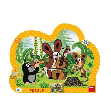 Puzzle z bajki Krecik Ramkowe - elementy układane są na tekturowej podkładce 25 elementów Wymiary całej układanki, z ramką: 35 x 27 cm Wiek dziecka: 3+ Wyprodukowano w Czechach Producent: Dino Certyfikat bezpieczeństwa CE Produkt nowy, oryginalny, na licencji
