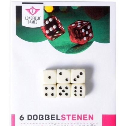 6 białych kości zapakowanych w blister. 16mm średnicy