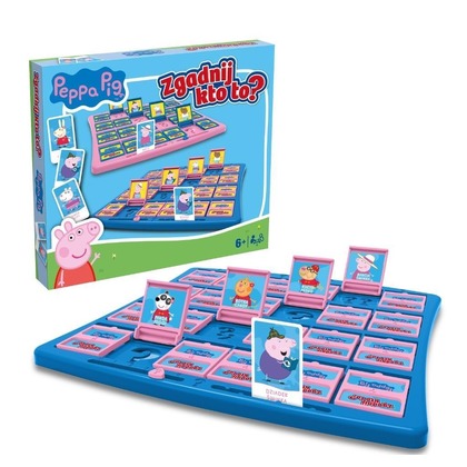 To wyjątkowa wersja klasycznej gry Zgadnij kto to?, stworzona z myślą o najmłodszych fanach Świnki Peppy. Gra przenosi dzieci do świata znanego z popularnej bajki, pełnego radosnych przygód i sympatycznych postaci. Czy uda ci się odgadnąć, kogo wylosował twój przeciwnik? Czy to Peppa? A może jej brat George? Czy twoja postać nosi okulary? Czy lubi skakać po kałużach? Zadawaj pytania, eliminuj postacie i jako pierwszy odkryj, kogo skrywa przeciwnik! W pudełku znajdziesz dwie plansze z bohaterami bajki oraz karty postaci, dzięki którym każda rozgrywka będzie pełna emocji.