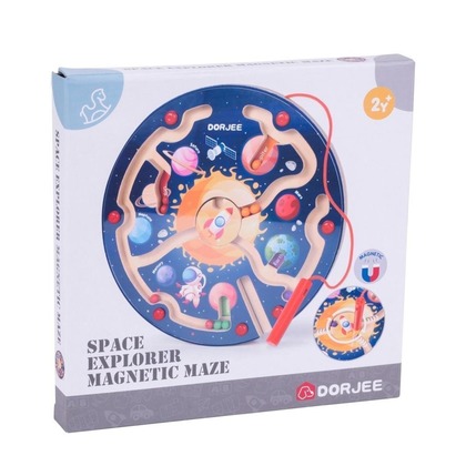 Edukacyjny magnetyczny labirynt o tematyce kosmicznej. Użyj magnetycznej różdżki, aby przesuwać koraliki do odpowiedniej skali kolorów.