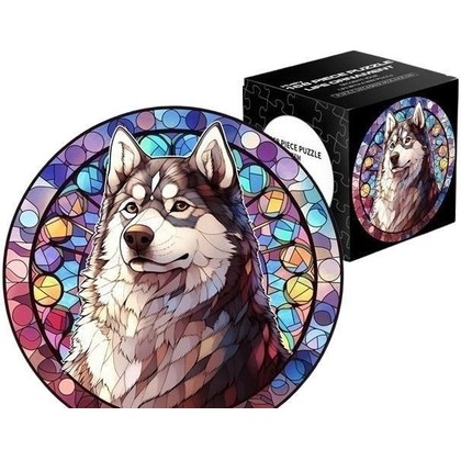 Odkryj niezwykłe piękno i artystyczne detale z naszymi okrągłymi puzzlami. Ten zestaw składa się ze 168 elementów tworzących wizerunek dumnego psa husky. Grafika została zaprojektowana w unikalnym, witrażowym stylu, gdzie każdy kawałek jest nasycony bogatymi i żywymi kolorami, tworząc efekt mozaiki świetlnej. Układanie tych puzzli to nie tylko doskonała forma relaksu i ćwiczenia dla umysłu, ale również tworzenie małego dzieła sztuki. Po złożeniu obrazek husky'ego otoczony geometrycznym, kolorowym tłem będzie wspaniałą ozdobą. Idealne dla każdego, kto ceni sobie oryginalne wzory i szuka odprężającej, ale satysfakcjonującej rozrywki.