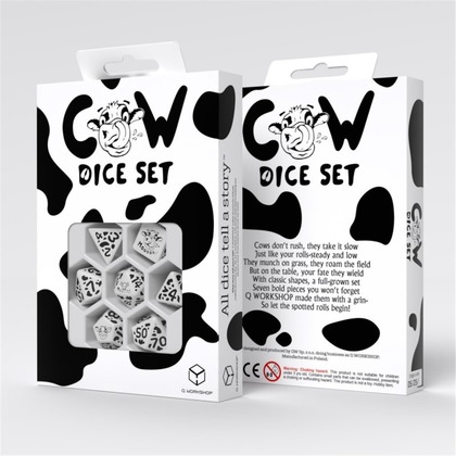 Majestatyczna krowa w świecie kości, która z dumą maszeruje przez pastwiska gier! Krowi zestaw kości: MOOzilla zachwyca kontrastowym wyglądem: klasyczne krowie łaty i urocze kreskówkowe pyszczki sprawiają, że każdy rzut nabiera humorystycznego charakteru.   Dlaczego warto? Czarno-białe piękno Klasyczne łaty na białym tle tworzą elegancki, kontrastowy i zabawny projekt. Krowie detale Urocze krowie pyszczki na najwyższych ściankach dodają figlarności każdemu rzutowi. Świetna czytelność Monochromatyczny styl gwarantuje wyraźne oznaczenia i maksymalną przejrzystość. Zabawa i oryginalność Idealne dla graczy z poczuciem humoru, jako prezent lub element kolekcji niezwykłych zestawów kości. Wyjątkowa jakość Trwałe, dopracowane kostki.