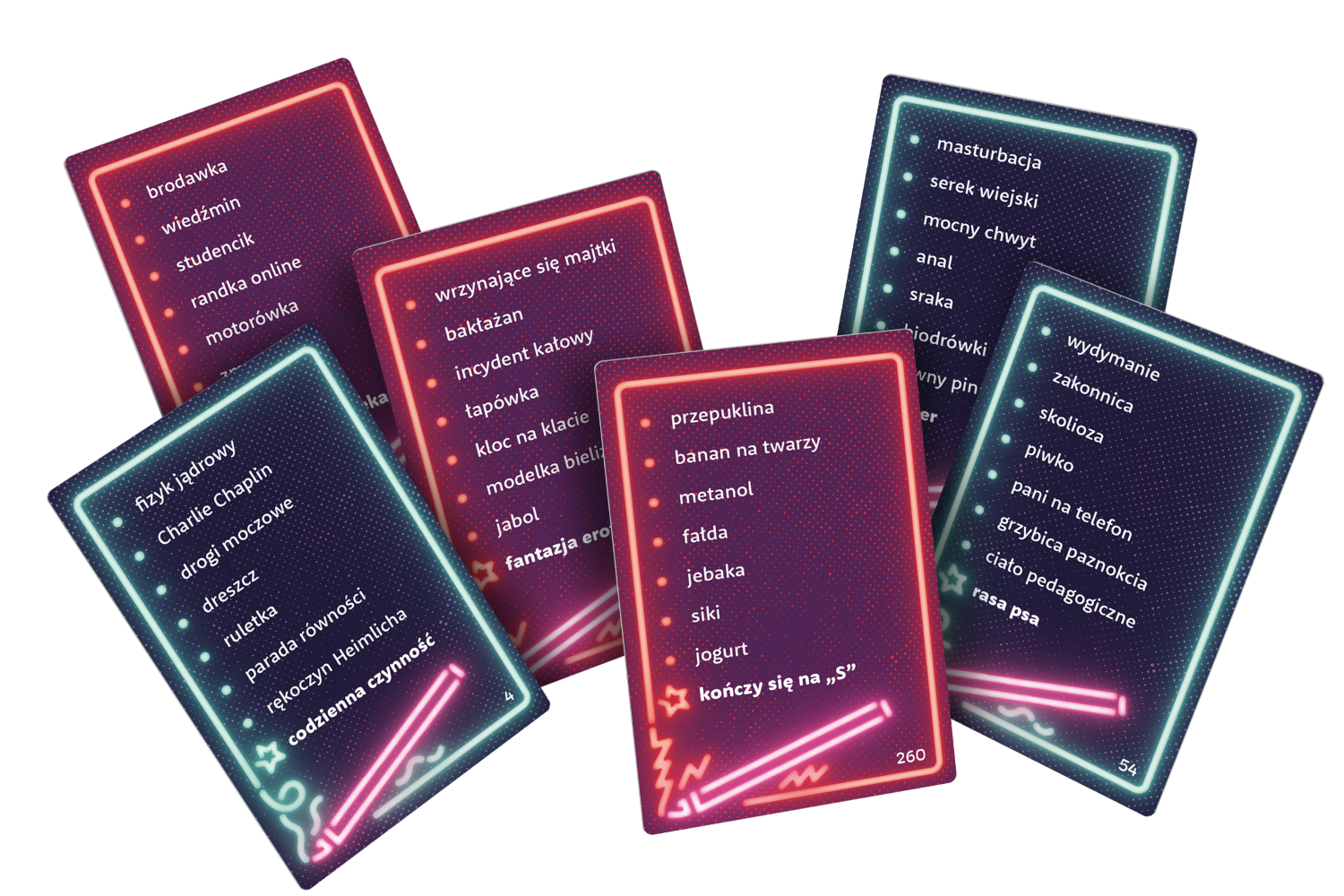 Narysuj to, co przeczytałeś, a potem zgadnij, co zobaczyłeś. Wszyscy jednocześnie rysujecie, przekazujecie szkicowniki dalej, zgadujecie i śmiejecie się, poznając zabawne odpowiedzi, których nikt nie był w stanie przewidzieć! Podaj dalej! Bez cenzury to wyjątkowa gra skojarzeniowa, która dorosła i nabrała naprawdę specyficznego poczucia humoru. Podczas zabawy wszyscy jednocześnie rysujemy wylosowane hasła, a następnie staramy się odgadnąć, co narysowali przeciwnicy. Zanim dotrzemy do ostatniej strony szkicownika, czeka nas mnóstwo dziwnych skojarzeń, zabawnych pomyłek i niedopowiedzeń, zwłaszcza że większość haseł na pierwszy rzut oka kojarzy się tylko z jednym Na czym to polega? Podaj dalej! Bez cenzury to właściwie głuchy telefon, tyle że zamiast szeptać słowa do ucha naszym towarzyszom, będziemy musieli je dla nich narysować! Na początku gry każdy losuje jedno z haseł i rysuje jego interpretację w swoim notesie. Następnie obrazek ten przekazywany jest kolejnej osobie, która spróbuje odgadnąć, co przedstawia. Swoją odpowiedź zapisuje słownie i podaje notes dalej, a kolejny gracz musi narysować to, co zostało zapisane. I tak w kółko, póki notes do nas nie wróci wtedy czeka nas zabawa z odkrywaniem, gdzie po drodze zniknął pierwotny sens. Dlaczego pokochasz tę grę? Wbrew pozorom do zabawy z Podaj dalej! Bez cenzury wcale nie potrzeba zdolności plastycznych! Prawdę mówiąc, im gorzej rysujecie, tym więcej czeka Was śmiechu i zabawnych pomyłek! Ta wyjątkowa gra imprezowa pozwala przełamać pierwsze lody i doskonale bawić się również tym, którzy nie przepadają za klasycznymi kalamburami, występami przed grupą i byciem w centrum uwagi. Odświeżona wersja Podaj dalej! to ponad 2000 klasycznych i zupełnie nowych haseł, a co za tym idzie jeszcze więcej zabawnych pomyłek! Nasza wyobraźnia będzie musiała wejść na najwyższe obroty, żeby odgadnąć, co też narysowali pozostali.