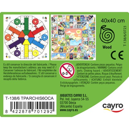 Drewniana plansza do gry (Chińczyk dla 6 graczy / Gęś 40x40 cm) (T-138/6)