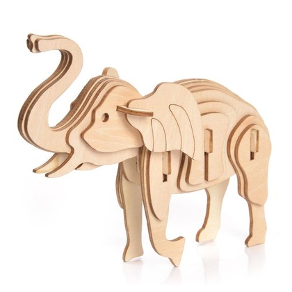 Drewniane puzzle 3D w kształcie Słonika. Zestaw został wykonany z wysokiej jakości sklejki i jest w postaci arkuszy z wstępnie wyciętymi i ponumerowanymi elementami. Przed montażem należy oddzielić części od wykroju, a następnie połączyć bez użycia kleju, zgodnie ze szczegółową instrukcją dołączoną do opakowania. Zabawka edukacyjna, która po złożeniu może również służyć jako dekoracja. Uwaga - zestaw może zawierać małe elementy, podczas składania puzzli, dzieci muszą pozostać pod opieką dorosłych.