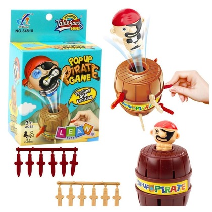 SZALONY WYSKAUJĄCY PIRAT W BECZCE Szalony Pirat w Beczce to emocjonująca gra zręcznościowa, która dostarczy wiele śmiechu i napięcia zarówno dzieciom, jak i całym rodzinom. Zabawka przeznaczona jest dla dzieci od 3. roku życia i doskonale sprawdzi się jako gra towarzyska dla dwóch lub większej liczby osób. Zasady są proste: umieść pirata w beczce, rozdaj każdemu z graczy po kilka szabel i rozpocznijcie zabawę. Każdy uczestnik po kolei wsuwa miecz w beczkę - ale uwaga! Jeden z otworów uruchamia mechanizm, który sprawia, że pirat wystrzeli jak z procy. Gra rozwija zręczność, logiczne myślenie, cierpliwość i wprowadza nutę zdrowej rywalizacji. Wysoka jakość wykonania i atrakcyjna kolorystyka sprawiają, że gra przyciąga wzrok i wzbudza zainteresowanie już od pierwszej chwili. Wszystkie elementy zostały wykonane z trwałych i bezpiecznych materiałów, co gwarantuje bezpieczeństwo użytkowania przez najmłodszych. To idealna propozycja na prezent, wspólne zabawy rodzinne czy jako atrakcja na dziecięce imprezy. SPECYFIKACJA: Tworzywo: Plastik wysokiej jakości, bezpieczny dla dzieci Funkcje: Mechanizm wyskakującego pirata, gra zręcznościowa, element losowości i rywalizacji Wymiary opakowania: 15 x 10 x 6 cm ZAWARTOŚĆ ZESTAWU: Beczka Figurka pirata 16 x szabel Opakowanie