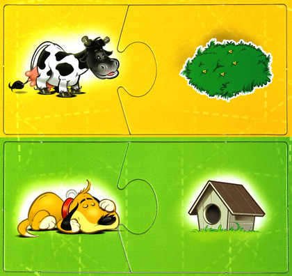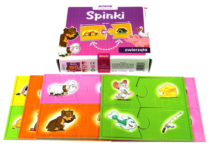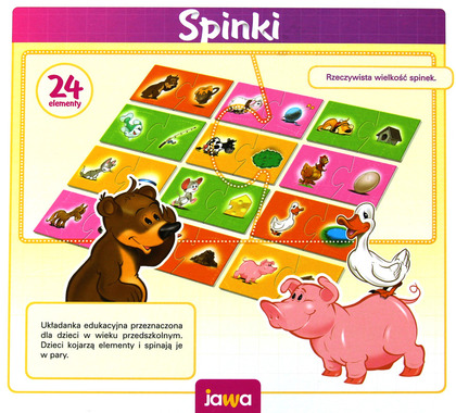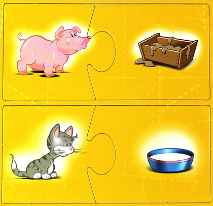 Układanka edukacyjna przeznaczona dla dzieci w wieku przedszkolnym. Dzieci kojarzą elementy i spinają je w pary.
