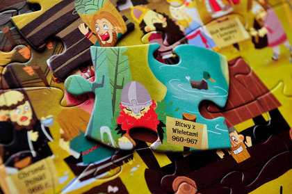 Puzzle zostały stworzone, żeby w interesujący sposób przybliżyć dzieciom historię początków państwa polskiego w oparciu o kilka wybranych wydarzeń z okresu wczesnopiastowskiego. Barwne scenki, często humorystyczne, nawiązują zarówno do istotnych faktów historycznych (ślub Mieszka I i Dobrawy, chrzest Polski, bitwa pod Cedynią, bitwy z Wieletami), jak i podań (legenda o Lechu, Czechu i Rusie, legenda o Popielu). Ze względu na różnorodność przedstawionych scenek, postaci i zwierząt, puzzle będą odpowiednie i dla chłopca, i dla dziewczynki. Zarówno sama ilustracja, jak i informacje umieszczone na pudełku mogą być punktem wyjścia do rozmów z dziećmi o początkach państwa polskiego.