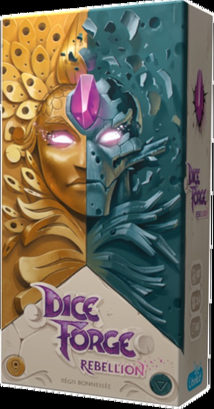 Dice, Islands, Temple. Everything was ready to begin the next grand tournament. But the gods did not count on their opponents. Ready to sedition, the goddess and the titans want to change all of the rules.   Dice Forge: Rebellion, the first expansion for Dice Forge, adds two different modules that can be added to the game: thirty exploit cards as well as new die faces, new boards, and an expansion to the sanctuary box are added to offer players new challenges, greater interaction, and more replayability. In Dice Forge: Rebellion, find more interaction and combination. Heroes cofront new ordeals with the unexpected attendance of the goddess or the titans. Each of these two optional events provides a module (board, cards, faces and pawns) wiht a recommended setup of 15 new cards, to be mixed with the base game.