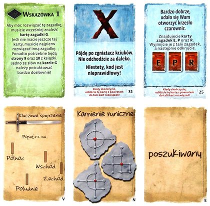 W momentach, w których skończą się Wam pomysły, a czujecie, że rozwiązanie jest tuż pod nosem możecie skorzystać z kart podpowiedzi. Do każdej zagadki w grze, przypisane są dwie podpowiedzi i karta rozwiązania. Jeśli wychodzicie z siebie, ale nie możecie przejść dalej - zamiast frustrować się dalej, możecie dobrać taką kartę, jednak ostateczny wynik będzie wtedy nieco niższy! Będziecie wycinać elementy gry, giąć, rysować po kartach, sprawdzać najbardziej nieoczywiste rozwiązania, kodować, dekodować, układać, odwracać, kolorować - ale czy uda Wam się znaleźć właściwe rozwiązanie?