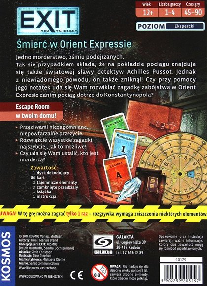 Seria "Exit" to niezwykle wciągające gry, z których każda postawi Was w innej sytuacji. Czy uda Wam się uciec z tajemniczej chatki szaleńca? Wydostać ze stacji badawczej, zamku lub zapomnianej wyspy? Odkryć tajemnicę laboratorium? Przetrwać w grobowcu Faraona? Fabularny wstęp nakreśli sytuację, jednak od tej pory będziecie musieli radzić sobie sami...
