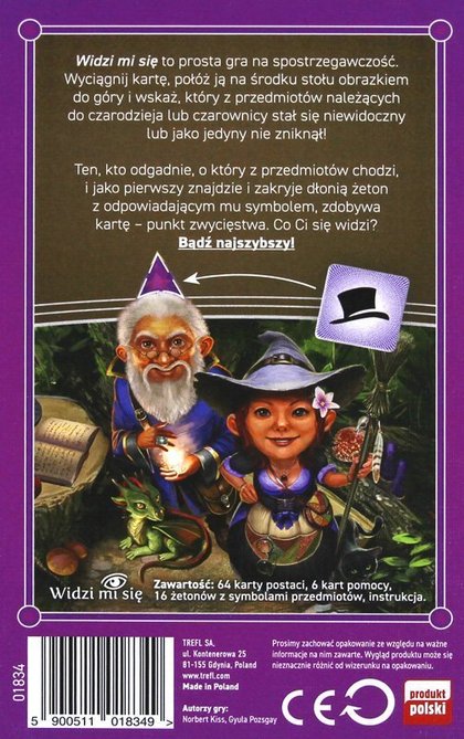 "Widzi mi się" to prosta gra na spostrzegawczość. Wyciągnij kartę, połóż ją na środku stołu obrazkiem do góry i wskaż, który z przedmiotów należących do czarodzieja lub czarownicy stał się niewidoczny lub jako jedyny nie zniknął!