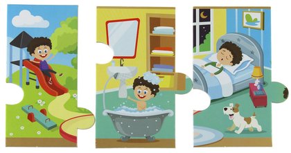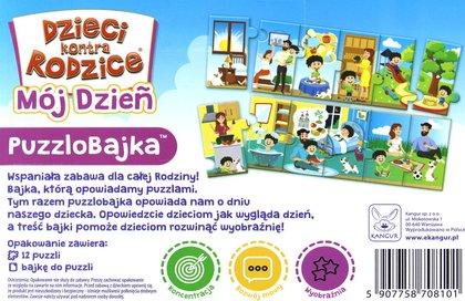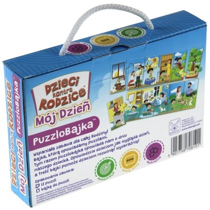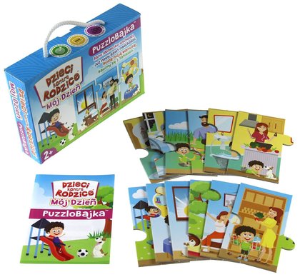 "Mój dzień" to bajka, którą opowiadamy puzzlami. Jest to wspaniała zabawa dla dziecka, ponieważ dzieci w wieku 2-3 lat uczą się z obserwacji, poznają to co widzą. Tym razem puzzlobajka opowiada nam o dniu naszego dziecka. Opowiedzcie dzieciom jak wygląda dzień, a treść bajki pomoże dzieciom rozwinąć wyobraźnię. Pamiętajcie, że układając puzzlobajkę możecie także ułożyć własne opowiadanie.
