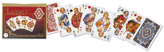 Klasyczne, bardzo popularne, najwyższej jakości karty do gry austriackiej firmy Piatnik. Idealne do brydża, pokera, remika oraz innych gier. Jakość i tradycja w doskonałej cenie!