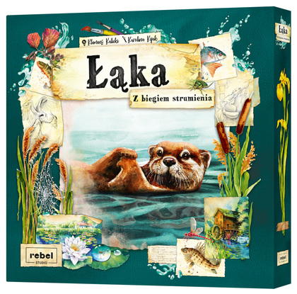 "Łąka: z biegiem strumienia" to dodatek do gry planszowej Łąka, w którym będziemy kontynuować naszą wędrówkę jako obserwatorzy przyrody. Z perspektywy kajaka odkryjemy gatunki roślin i zwierząt żyjące w rzekach, strumieniach i jeziorach. Jeśli będziemy wystarczająco uważni, może zdołamy dostrzec pływające w toni ryby, a dalej pluskające się w wodzie wydrę lub bobra budującego swoje żeremie.