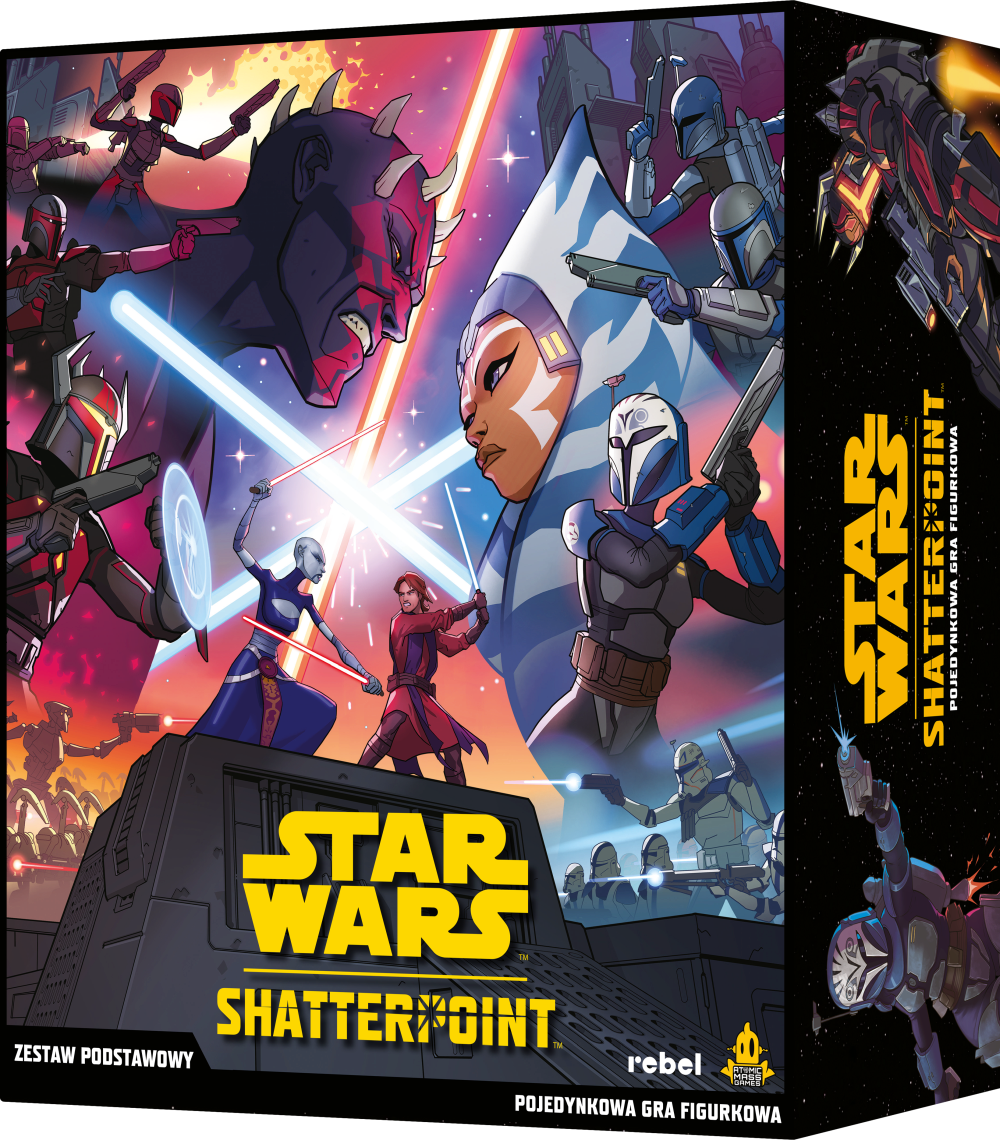 Konflikt ogarnia planety od Światów Jądra aż po Zewnętrzne Rubieże. W ogniu walk zdarzają się momenty wielkiej wagi, znane jako punkty przełomu, w których działania nielicznych mogą zmienić przebieg pojedynczej bitwy, a nawet wpłynąć na losy całych cywilizacji. Niezależnie od tego, czy przeprowadzasz tajne misje głęboko na terytorium wroga, czy toczysz zaciekłe pojedynki w wielkich bitwach planetarnych, Twoje wybory zawsze mają znaczenie. Star Wars: Shatterpoint - Zestaw podstawowy to pojedynkowa gra figurkowa dla 2 osób, w której przejmujemy kontrolę nad kultowymi postaciami z galaktyki Star Wars i ich sojusznikami, walcząc ze sobą o to, kto pierwszy osiągnie cele misji. Zbuduj swoją drużynę, rzuć wyzwanie przeciwnikom i rozegraj mnóstwo ekscytujących bitew, które przesądzą o losach galaktyki! Pamiętaj, że najlepsi dowódcy to ci, którzy szybko przystosowują się do sytuacji pośród chaosu bitwy i korzystają z dobrodziejstw Mocy. Figurki oraz tereny zawarte w grze nie są pomalowane i wymagają samodzielnego złożenia. Dlaczego pokochasz tę grę? Dzięki szczegółowo wykonanym, wyjątkowym figurkom w dynamicznych pozach każdy gracz będzie mógł stworzyć swój własny oddział inspirowany Gwiezdnymi Wojnami. To nie lada gratka zarówno dla fanów serii, jak i tych, którzy zajmują się malowaniem figurek! Zasady gry oraz elastyczne możliwości budowania drużyn zachęcają graczy do tworzenia nieszablonowych zestawów i dopasowywania ich do celów danej misji. Do wyboru mamy gotowe drużyny tematyczne jak np. Ahsoka Tano i Bo-Katan Kryze lub Lord Maul i jego lojalni komandosi. Możemy też sami łączyć i dopasowywać rozmaite postacie, by stworzyć niestandardowe oddziały, które poprowadzimy do walki. Podczas rozgrywki wykorzystujemy specjalne zdolności wybranych postaci i rozmaite umiejętności bojowe, aby przejąć kontrolę nad walką. Nasze cele są dynamiczne i zmieniają się w trakcie realizowania misji, czeka nas więc emocjonujący wyścig o to, kto najlepiej dostosuje się do sytuacji i zrealizuje je jako pierwszy. Zestaw podstawowy zawiera 4 pełne oddziały, czyli 2 kompetytywne armie w standardzie turniejowym. Ponadto oprócz 16 figurek, i niezbędnych do gry kostek, kart oraz miarek, w pudełku znajdziesz też tereny do zbudowania pola bitwy. Zarówno dla graczy hobbystycznych, jak i dla tych, którzy planują organizować turnieje w Star Wars: Shatterpoint, przygotowaliśmy szereg przydatnych plików w języku polskim. Znajdziesz je pod poniższymi linkami: Instrukcja do gry FAQ i errata Objaśnienia symboli Rozmiary podstawek Zasady rozgrywania Shatterpoint Showdown event Zasady rozgrywania Shatterpoint Premier Showdown event