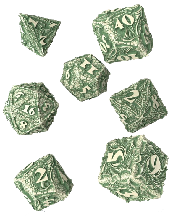 Zestawy Kości Dracopolis otwierają drogę do odkrywania tajemnic wprost z legend o smokach. Te kości inspirowane są paleontologicznymi odkryciami na wykopaliskach rozrzuconych po całym świecie, gdzie naukowcy odnaleźlismocze kości i różne artefakty. The Andean Longneck jest hołdem wobec istot, których szczątki zostały odkryte na zachodnim wybrzeżu Ameryki Południowej, zwłaszcza w rejonie górskiego łańcucha Andów. Podania z tych okolic sugerują, że typowy smok z tej rodziny miał długi i prosty ptasi dziób, a wzdłuż całego wężowatego ciała wyrastał mu grzebień barwnych piór. Powstałe w wyniku udanej kampanii na Kickstarterze w 2022 roku, wspartej przez ponad 1000 osób, te zestawy kości wchodzą teraz do naszej stałej oferty. Dokładnie tak, jak obiecaliśmy. Wykonane z wysokiej jakości żywicy, oferują unikalne odczucia podczas rzucania, inne niż tradycyjne kości. Dzięki misternym, trójwymiarowym wzorom pazurów, skrzydeł, kości i smoczych łusek, każdy rzutjest jak odkrywanie fragmentu smoczej historii. Beżowy materiał z zielonymi akcentami tworzy obraz długiego węża o zielonych łuskach, ukrywającego się wśród górskiej roślinności. Cyfry są duże i wyraźne, zapewniając łatwość odczytu na zdobionym smoczymi motywami tle. Nie wahaj się sięgnąć po te wyjątkowe kości; pozwól im przenieść się do czasów starożytnych smoków i ich legendarnych opowieści. Uznaj przytłaczający majestat strażnika gór! Z krainy zdradliwych gór Starożytne Artefakty Zestaw zawiera 7 elementów: K4, K6, K8, K10, K12, K20 i K100. Smocza Inspiracja Każda kość ma trójwymiarowe wzory pazurów, skrzydeł, kości i łusek obok wyraźnych cyfr. Skamieniałe Piękno Beżowa żywica z zielonymi detalami przypomina węża skrytego wśród listowia. Rzemiosło Żywiczne Kości wykonane z żywicy, oferujące unikalne odczucia i wagę podczas rzucania. Naukowe Dziedzictwo Zestaw Kości Dracopolis - The Andean Longneckjest produkowany w Polsce, UE.