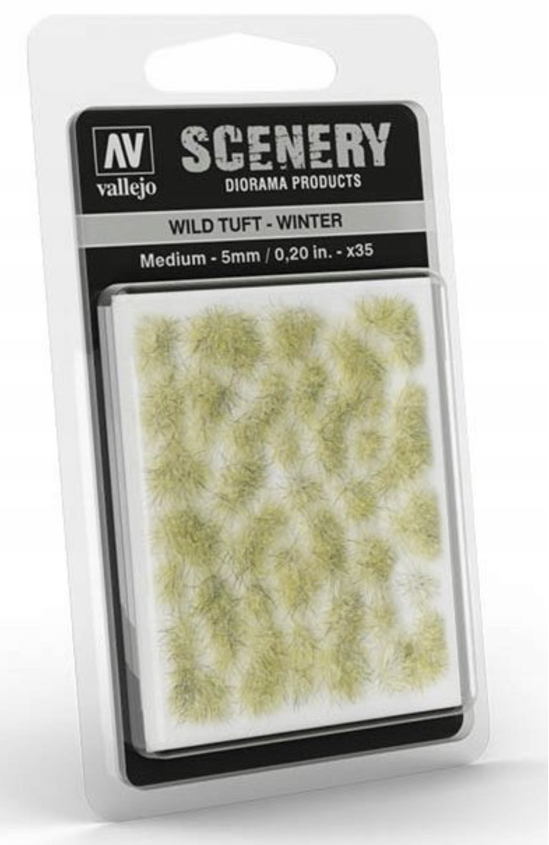 Vallejo Scenery to gama miniaturowych kępek imitujących roślinność, które pomagają uzupełnić scenki, dodając realizmu modelom, figurkom, terenom do gier wojennych czy dioramom.   Vallejo Scenery zawiera szeroką gamę rozmiarów i wzorów. Tufty są gotowe do użycia, należy po prostu odkleić każdą kępkę osobno i umieścić ją w scenie - są amoprzylepne do podłoża, choć można je również przymocować klejem PVA, aby uzyskać mocniejsze i trwalsze przyleganie.
