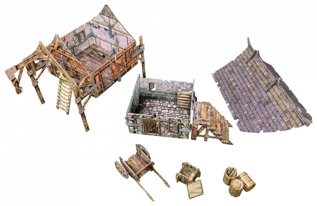 Kiedy nadchodzą żniwa, mieszkańcy wioski potrzebują miejsca do przechowywania plonów na zimę. Te duże stodoły można znaleźć w miastach i na nabrzeżach, a ich przepastne garaże wyposażone są w specjalistyczny sprzęt do załadunku towarów.   BattleSystems: Storage Barn zawiera wszystko, czego potrzebujesz do zbudowania stodoły magazynowej wraz z kołem pasowym i schodami, nadającej się do wielu gier fantasy i historycznych w skali 28-35 mm. Wnętrze jest w pełni szczegółowe, a dach i górne piętro można zdemontować. Zestaw zawiera ręczny wózek i teren do rozrzucenia na stole. Wiele elementów jest modułowych i można je łączyć w różne kombinacje lub mieszać i dopasowywać do reszty asortymentu.   Wszystkie elementy są w pełni pomalowane, wystarczy je złożyć. Niektóre elementy mogą wymagać kleju.
