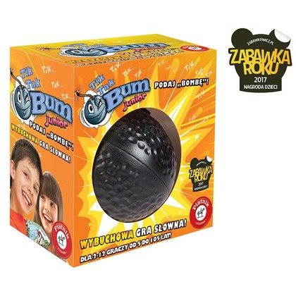 Świetna zabawa dla każdego dziecka Lubicie zabawę w skojarzenia? A lubicie, jeśli czujecie przy tym trochę stresu związanego z upływającym czasem? Jeśli tak, to z pewnością polubicie i Tik Tak Bum Junior Gra Podróżna. Kultowa gra Piatnika teraz również w wersji kompaktowej, dzięki czemu można ją zabrać na wakacje, w podróż czy na piknik do parku! W grze może uczestniczyć nawet 12 graczy, dzięki czemu możemy się bawić w gronie rodzinnym, na dziecięcej imprezie czy nawet w szkole. Dodatkowo jest możliwość gry w grupach co daje nam możliwości kooperacyjne. Celem gry jest kolejne wymyślanie przez graczy rzeczy pasujących do tego, co przedstawia wylosowana karta. Po wymyśleniu przekazują kolejnemu graczowi tykającą bombę. Są różne warianty gry, które można dopasowywać do liczby, wieku i stopnia rozegrania uczestników. Gra jest bardzo prosta i łatwa do zrozumienia nawet dla najmłodszych. Nie musimy przedzierać się przez zawiłości zasad i instrukcji, możemy w zasadzie w kilka sekund przystąpić do rywalizacji. Elektroniczna bomba zaraz wybuchnie! Tik Tak Bum Junior Gra Podróżna składa się ze 50 dwustronnych kart z hasłami i obrazkami przedstawiającymi różne miejsca i sytuacje oraz wybuchającej bomby! Uruchomiona bomba może "wybuchnąć" w losowym momencie - może tykać minutę, 30 sekund lub tylko 10! Bomba potrzebuje dwie baterie AAA 1,5 V (nie są załączone), by po wciśnięciu "zapalnika" zaczęła tykać. Szybka gra słowna dla dzieci Jeden z graczy bierze do ręki bombę i uruchamia mechanizm - bombka zaczyna tykać. Następnie odkrywa pierwszą kartę ze stosu. W tym momencie musi podać słowo pasujące do wyłożonej karty. Oczywiście wyrazy nie mogą się powtarzać. Po poprawnym skojarzeniu przekazuje bombę kolejnemu graczowi, który musi zrobić dokładnie to samo. Bomba nie będzie tykała w nieskończoność - może to trwać 10, 20, 30 sekund lub nawet minutę! Musimy być przygotowani na to, że może wybuchnąć w każdej chwili, dlatego w zabawie liczy się spostrzegawczość oraz dobry refleks. Pechowy gracz, w którego rękach nastąpiła eksplozja, musi zabrać odkrytą w tej kolejce kartę. Ten gracz odkrywa kolejną kartę i znowu bombka zaczyna sobie krążyć czyhając na swoją ofiarę. Gra kończy się w momencie, w którym dany gracz uzbiera pięć kart. Wygrywa ta osoba, która tych kart uzbiera najmniej. Cała rozgrywka trwa około 30 minut. Tik Tak Bum Junior Gra Podróżna pomoże rozwinąć język angielski i nie tylko! Ponieważ karty zawierają słowa po polsku i angielsku, Tik Tak Bum Junior idealnie nadaje się do ćwiczeń językowych oraz wzbogacania słownictwa z wielu obszarów tematycznych w języku polskim oraz angielskim. W każdym przypadku poszerza się słownictwo, ćwiczy się szybkość formułowania wypowiedzi, dzieci przełamują strach przed wypowiedzią, walczą z presją czasu i dobrze się bawią. Mimo prostych zasad gra może mieć również zastosowanie na zajęciach z języków obcych w grupach w dowolnym przedziale wiekowym.