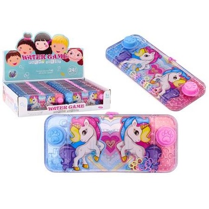 Gra Wodna Konsola Zręcznościowa Różowa Jednorożec Pad Kółeczka To klasyczna wodna gra zręcznościowa z motywem jednorożca, często spotykana w formie niewielkiej, prostokątnej zabawki. Jej mechanizm jest prosty, ale bardzo wciągający. Gra ma kształt prostokąta, co sprawia, że jest wygodna do trzymania w dłoniach. Po prawej i lewej stronie urządzenia znajdują się dwa różowe i niebieskie przyciski ozdobione łapkami zwierzątka. Te przyciski są kluczowe do gry i są łatwo dostępne dla palców gracza. W środku gry, w przezroczystym zbiorniku wypełnionym wodą, znajdują się kolorowe obręcze. Są one swobodnie unoszące się wewnątrz cieczy. W dolnej części gry wystają dwa szpice, na które należy nadziać obręcze. Szpice te są celami, do których gracz musi trafić obręczami. Gracz naciska przyciski, aby wprawić w ruch obręcze. Naciśnięcie jednego z przycisków powoduje, że strumień wody wypycha obręcze w górę. Zadanie gracza polega na precyzyjnym dozowaniu siły nacisku na przyciski. Mocniejsze wciśnięcie przycisku powoduje, że obręcz porusza się wyżej, podczas gdy słabsze naciskanie skutkuje mniejszym ruchem. Wymaga to zręczności i wyczucia. Celem gry jest umieszczenie obręczy na dwóch wystających szpicach. Osiągnięcie tego celu wymaga precyzyjnego sterowania ruchem obręczy, co jest głównym wyzwaniem w grze. Gra rozwija zręczność, koordynację ruchową oraz cierpliwość. Jest prostym, ale efektywnym sposobem na zabawę, oferującym wiele godzin rozrywki dla dzieci i dorosłych. Wymiary gry: 15 cm x 7 cm x 1 cm Cena dotyczy jednej sztuki, w opakowaniu zbiorczym znajdują się 24 szt. Posiada certyfikat CE, ponadto jest zgodny z normą EN71. Zabawka przeznaczona jest dla dzieci powyżej 3 roku życia.