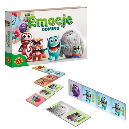 Radość, smutek, rozmarzenie, strach Każdego dnia towarzyszą nam różne uczucia, ale czy potrafimy je nazwać i zrozumieć? Domino Emocje to niezwykła gra, która w przystępny i angażujący sposób pomaga dzieciom odkrywać świat emocji. Dzięki zabawnym stworkom, które personifikują różne uczucia maluchy uczą się rozpoznawać, nazywać i lepiej rozumieć swoje emocje, a rodzice zyskują doskonałą okazję do rozmowy o tym, co czujemy i jak możemy sobie z tym radzić.