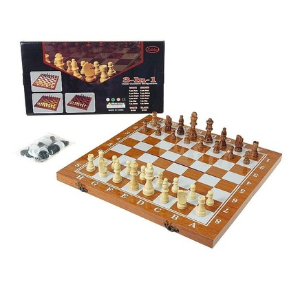 Szachy drewniane, 3 w 1, 49x25,5x5cm, BOX