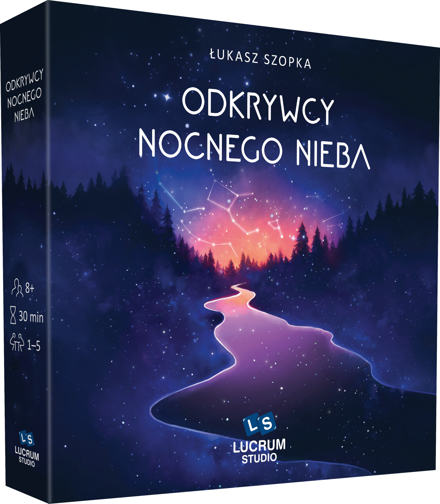 Odkrywaj kolejne fragmenty nocnego nieba! Wypatruj potrzebnych ci gwiazd iprecyzyjnie kreśl najciekawsze konstelacje! Uważaj jednak, aby większe gwiazdozbiory nie przysłoniły blasku tych mniejszych. Każda karta wgrze przedstawia jedną znajbardziej znanych konstelacji gwiazd. Twoim zadaniem będzie nanosić je naswoją mapę pamiętaj jednak ospecjalnych astronomicznych regułach! Czy towłaśnie twoja mapa będzie najbardziej precyzyjna? Kto z was zyska miano prawdziwego Odkrywcy Nocnego Nieba?    W trakcie gry wcielicie się w pasjonatów wpatrujących się godzinami w rozgwieżdżone niebo. Obserwując nieboskłon i wskazując palcem gwiazdozbiory migoczące w oddali, poczujecie pokusę, by stworzyć mapę tego, co widzicie. Podczas rozgrywki wykorzystacie plansze z obrotowymi mapami, na które za pomocą białych mazaków będziecie nanosić dostrzeżone konstelacje gwiazd widoczne na waszych kartach. Choć konstelacje na kartach łączyć będzie ich rozmiar, to każda z nich jest unikatowa, zatem wasze mapy nigdy nie będą wyglądały tak samo!   Gra będzie toczyć się przez 6 rund, w trakcie których każde z was narysuje swoje unikatowe konstelacje. Za każdą, którą uda się wam wpisać w swoją mapę z wykorzystaniem wskazanych na kartach konstelacji gwiazd, otrzymacie punkty. Dodatkowo otrzymacie punkty za umiejscowienie swoich konstelacji w określonych miejscach mapy, takich, jak jej obrzeża czy linia horyzontu.    Osoba, która na koniec gry będzie miała łącznie najwięcej punktów, zostanie zwycięzcą!