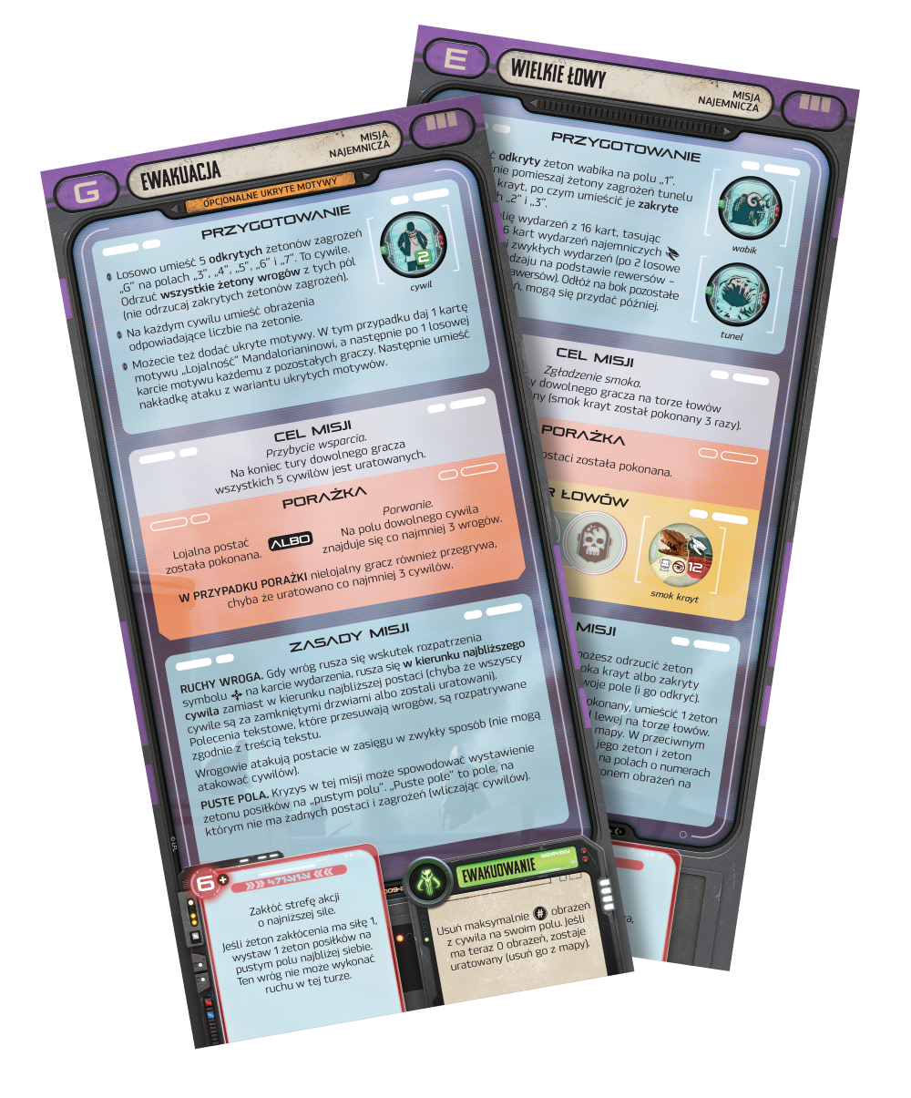 Mandalorianin musi bezpiecznie odeskortować dziecko do jego pobratymców, ale na każdym kroku czai się niebezpieczeństwo. Czy odnajdzie Jedi? A może to Moff Gideon osiągnie swój cel?   Współpracujcie, aby ukończyć ekscytujące misje w The Mandalorian: Przygody - Klan dwóch, rozszerzeniu inspirowanym drugim sezonem serialu o legendarnym łowcy nagród! Czekają na Was 4 misje fabularne na zupełnie nowych mapach oraz 4 zróżnicowane misje najemnicze. Wyzwaniem będą też karty pojedynku, wydarzenia z długotrwałymi efektami i większa liczba zdolności wrogów, dzięki którym gra będzie wymagała opracowania nowych strategii i taktyk. Na szczęście macie do dyspozycji 4 nowe postacie, z których każda charakteryzuje się zupełnie innym stylem, umiejętnościami i sztuczkami.   Czym jest The Mandalorian: Przygody?   To  angażująca gra inspirowana serialem o legendarnym łowcy nagród, w której wraz z przyjaciółmi wcielacie się w niego oraz jego sojuszników, by walczyć z wrogami i rozstrzygać rozmaite dylematy. Podczas zabawy będziecie mieli okazję zostać bohaterami, przeżywać niezapomniane przygody i poszerzać swoje horyzonty, odkrywając tajemnice świata Gwiezdnych Wojen A to wszystko po to, by zrealizować cele ekscytujących misji!