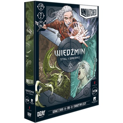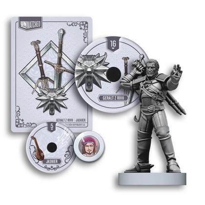 UWAGA! Do zestawu dołączona jest unikalna i limitowana figurka Geralta w balii. Figurka kolekcjonerska jest dostępna tylko w tym druku produkcyjnym i nie będzie jej można zdobyć przy kolejnych dodrukach. Oferta obowiązuje do wyczerpania zapasu.   Unmatched to gra figurkowa o pojedynkach postaci z różnych krain i epok, od herosów znanych z mitów i legend, do bohaterów książek i filmów. Każdy z nich dysponuje własną talią kart, która wyraża jego wyjątkowy styl walki. Możesz mieszać i zestawiać bohaterów z dowolnych zestawów Unmatched, ale pamiętaj: ostatecznie zwyciężyć może tylko jeden!   Dodatek Stal i Srebro zawiera bohaterów: Geralt z Rivii - Wiedźmin Ciri - Lwiątko z Cintry Starożytny Leszy - Duch Lasu   A dodatek Upadek Królestwa zawiera: Filippa Eilhart - Czarodziejka i intrygantka Yennefer i Tris - Lojalne przyjaciółki i odwieczne rywalki Eredin - Król Dzikiego Gonu