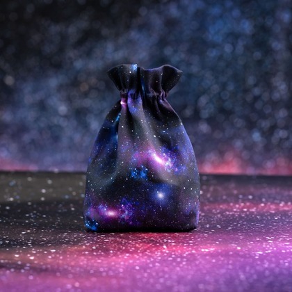 W otchłani kosmosu, gdzie światło gwiazd przecina bezkres ciemności, rodzi się coś niezwykłego.   Ten mieszek na kości wykonany jest z mocnej bawełny o barwnych wzorach. Sakiewka zamykana jest wytrzymałymi satynowymi sznurkami i mieści 9 pełnych zestawów kostek.