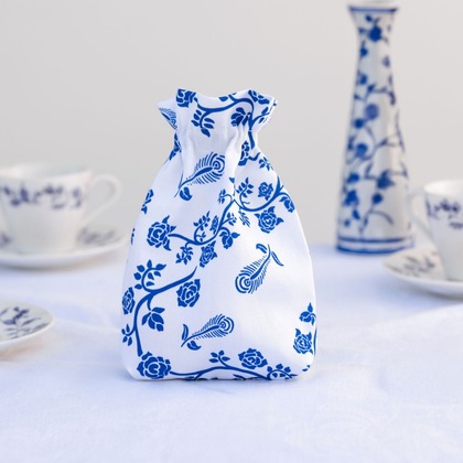 Od wieków ręce rzemieślników łączyły użytkowość z pięknem - wystarczy spojrzeć na porcelanę, gdzie każda linia wzoru niesie ze sobą własne znaczenie i historię.   Ten mieszek na kości wykonany jest z mocnej bawełny o barwnych wzorach. Sakiewka zamykana jest wytrzymałymi satynowymi sznurkami i mieści 9 pełnych zestawów kostek.