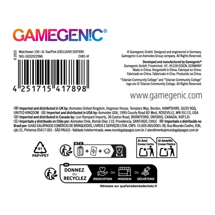 CZYM JEST WATCHTOWER 100+ CONVERTIBLE?   Twoja gra toczy się na mojej zmianie Gamegenic Convertible Watchtower łączy pudełko na talie, szufladę na akcesoria i pojemnik na karty w jednym eleganckim projekcie. Pojemnik na karty mieści do 100 podwójnie zakoszulkowanych kart chronionych w wyścielonym mikrofibrą miękkim wnętrzu. Szuflada sprawdza się idealnie do przechowywania kości, żetonów i innych pomniejszych rzeczy.   Innowacja - pojemnik na karty w pojemniku na karty! Watchtower można dowolnie obracać, sprawdza się idealnie jako kontener dla stosu kart. Dzięki Watchtower Twoja talia zachowa idealny porządek, a dobieranie kart będzie jeszcze lepsze.   CECHY   Mieści do 100 podwójnie zakoszulkowanych kart* (w grubszych koszulkach) i akcesoria Zawiera wyjmowaną szufladę na akcesoria I pojemnik na karty z niezależnym dostępem Pojemnik na karty może być wykorzystany jako kontener na stos kart by zachować karty w jednym miejscu przy stole Karty skierowane są ku górze dla bezpośredniej widoczności W pełni zdejmowane pokrywy. Umożliwiają modyfikacje Mix & Match Zdejmowane pokrywy mogą być przyczepione do części tylnej Wygoda w użytku dla prawo- i leworęcznych Mocne magnesy zapewniają precyzyjne i bezpieczne zamknięcie Sztywna i trwała konstrukcja Materiały najwyższej jakości (Powierzchnia Nexofyber + wyścielenie wnętrza mikrofibrą)   *Optymalizacja dotyczy koszulek Gamegenic. Koszulki innych firm mogą wpłynąć na pojemność/kompatybilność   www.gamegenic.com
