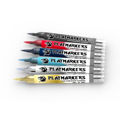 AK Interactive: Playmarkers to nowoczesne markery akrylowe, stworzone specjalnie dla modelarzy i miłośników gier figurkowych. Ich farba doskonale przylega do plastiku, żywicy, metalu i drewna, a szybkie schnięcie i odporność na wodę oraz wysoką temperaturę gwarantują trwałość malowania. Końcówka pozwoli zarówno na misterne dopracowywanie detali, jak i szybkie pokrywanie dużych powierzchni.   Najważniejsze cechy AK Interactive: Playmarkers?   praktyczność i wygoda użytkowania dzięki formie pisaka pędzelkowa końcówka pozwala na precyzyjną aplikację, nawet na małych powierzchniach uniwersalność - pisaki sprawdzą się doskonale na figurkach wykonanych z plastiku, żywicy czy metalu możliwość nakładania farby warstwami dla lepszego krycia łatwe mieszanie kolorów między markerami lub na palecie zalecane jest stosowanie białego podkładu dla najlepszych rezultatów kompatybilność z innymi produktami AK Interactive   Marker AK Interactive: Playmarkers to niezastąpione narzędzie w arsenale każdego modelarza i fana gier figurkowych, łączące wygodę użytkowania z profesjonalną jakością.   AK Interactive: Playmarkers - Space Knight (6) zawiera 6 markerów o kolorach: Gun Metal (AKM001) Red (AKM018) Ultramarine (AKM025) Sky Blue (AKM027) Silver (AKM030) Gold (AKM031)
