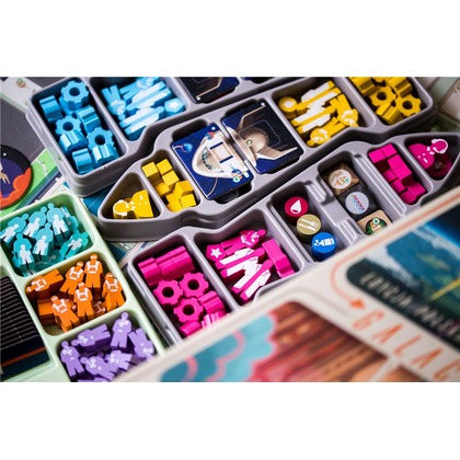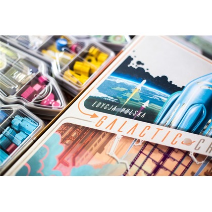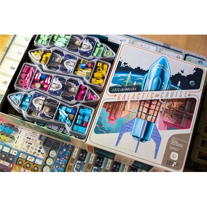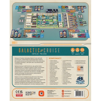 Witaj na pokładzie Galactic Cruise! Tutaj oferujemy naszym gościom coś absolutnie wyjątkowego: połączenie luksusowego rejsu z innowacją podróży kosmicznych. Jako pionierzy w organizowaniu długoterminowych wakacji w kosmosie, potrzebujemy Twojej pomocy! Twoja misja? Nie tylko budować statki kosmiczne i spełniać potrzeby wymagających pasażerów, ale także rozwijać naszą firmę, opracowywać nowe technologie, budować rozwiniętą sieć połączeń i rekrutować najlepszych specjalistów. To jednak nie wszystko aby zostać nowym Dyrektorem Generalnym Galactic Cruise, musisz zaimponować Radzie Nadzorczej i zdobyć najwięcej Punktów Zwycięstwa. A konkurencja jest zaciekła, bo każdy z pozostałych kierowników również liczy na ten awans! Każda Twoja tura oferuje Ci wybór jednej z trzech kluczowych akcji: Rozmieszczanie pracowników wybierz dwie akcje w dynamicznie rozwijającej się sieci firmy. Uruchamianie statku kosmicznego wyślij jednego z pracowników jako pilota i zadbaj o pasażerów. Odzyskiwanie pracowników przywołaj swoich ludzi na Ziemię i zgarnij specjalne premie finansowe. Podczas gry zajmiesz się: Pozyskiwaniem planów budowy. Budowaniem statków kosmicznych i innych projektów rozwijających naszą sieć. Przyciąganiem uwagi pasażerów i spełnianiem ich wymagań. Rozwijaniem połączeń między lokalizacjami, zapewniając sobie dostęp do dodatkowych akcji. Wpływaniem na rynek zasobów, który zmienia się w zależności od działań innych graczy. Jednocześnie rywalizujesz z innymi kierownikami o realizację celów korporacyjnych, co pozwoli zdobywać kostki postępu. Są one kluczowe w odblokowywaniu nowych możliwości i zakończeniu gry. Gdy odpowiednia liczba kostek zostanie umieszczona na torze postępu firmy, gra się kończy, a uczestnik z największą liczbą Punktów Zwycięstwa zostaje nowym Dyrektorem Generalnym Galactic Cruise!