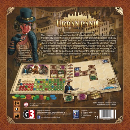 Urban Panic to kafelkowa gra planszowa, przeznaczona dla 2 do 4 graczy w wieku od 10 lat. Gracze wcielą się w rolę inwestorów budowlanych, projektujących miasta przyjazne mieszkańcom. Z pomocą architekta, burmistrza, planistki, inżyniera, a nawet szpiega, muszą zadbać o każdy aspekt życia miejskiego – odpowiednią liczbę miejsc pracy, inwestycje w przemysł i miejsca rozrywki, ekologię i budżet miejski.