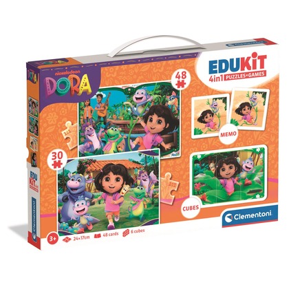 • Zawiera puzzle 30 elementów i 48 elementów, grę memo i sześć kostek.