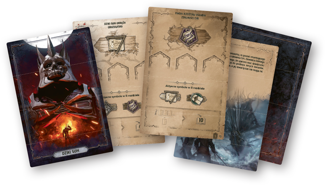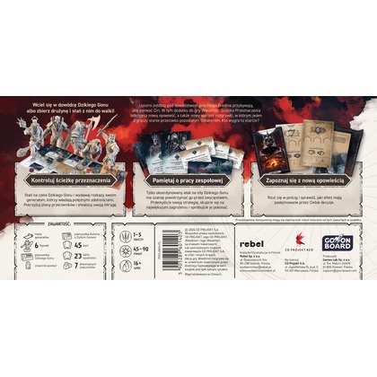 Dziki Gon, elitarna jednostka elfów, przybywa, aby porwać Ciri. Stawka jest wysoka: dziewczyna jest ich jedyną szansą na uratowanie własnego świata. Na czele upiornego orszaku staje Eredin potężny dowódca i genialny strateg. Tylko skoordynowany atak ma szansę powstrzymać go przed zwycięstwem.   Wiedźmin: Ścieżka Przeznaczenia - Dziki Gon to rozszerzenie wprowadzające zupełnie nową opowieść, a także nowy wariant rozgrywki umożliwiający graczom przyjęcie asymetrycznych ról. Jedna osoba stanie na czele upiornego orszaku i będzie wydawała rozkazy generałom o potężnych zdolnościach. Pozostali gracze spróbują przeprowadzić atak na siły Dzikiego Gonu, by powstrzymać go przed zwycięstwem.    Czym jest Wiedźmin: Ścieżka Przeznaczenia?   To rywalizacyjna gra planszowa, która opiera się na mechanice budowania stołu (tableau building). Podczas zabawy wcielamy się w postacie z wiedźmińskiego świata, aby raz jeszcze przeżyć dobrze znane opowieści. Co by było, gdyby to Jaskier w pojedynkę zmierzył się ze strzygą? Czy konflikt między Renfri a Stregoborem mógłby się zakończyć bez rozlewu krwi? W zależności od podejmowanych decyzji i wykonywanych akcji, dzięki sprytnie zagrywanym kartom, zbieranym symbolom i rozpatrywanym efektom, zdarzenia mogą przybrać zaskakujący obrót.