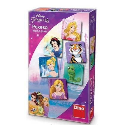 Gra pamięciowa typu memory (zwana też: pamięć, memo, memos) to popularna od wielu lat, prosta gra pamięciowa. Zabawa polega na zapamiętywaniu położenia identycznych par kart wśród rozłożonych "tyłem" kartoników. Wygrywa ten, komu uda się zapamiętać i zgromadzić ich najwięcej. Gra jest doskonałym treningiem pamięci i spostrzegawczości, a także świetnie sprawdzi się jako rozrywka w gronie rodziny czy przyjaciół. W proponowanym przez czeską firmę Dino zestawie znajdziemy karty nawiązujące do motywu Księżniczek Disney'a. Pudełko zawiera 48 kart, które stanowią 24 pary. Gra przeznaczona jest już dla dzieci od 4 lat wzwyż.