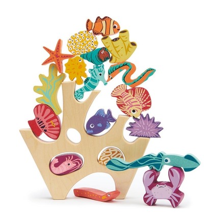 Drewniana gra zręcznościowa - Mieszkańcy rafy, Tender Leaf Toys Układanka drewniana, która pomoże ćwiczyć zręczność i koncentrację najmłodszych. W zestawie drewniana roślinność rafy koralowej, krabik, ośmiornica, krewetka, kałamarnica, rozgwiazda, rybka i inni morskie zwierzątka. Ułóż je na rafie tak, aby nie spadły! Zaproś do zabawy przyjaciół i grajcie razem! Wspaniała zabawa i rozwój umiejętności motorycznych malucha! Nasze zabawki produkowane są z drzewa kauczukowego, pochodzącego z kraju położonego na 13 tysiącach rajskich wysp - Indonezji. Do ich pomalowania użyliśmy bezpiecznych i delikatnych farb, dzięki czemu drewno zachowało swój naturalny wygląd i widoczną strukturę. Drewno kauczukowe cechuje się wyjątkową wytrzymałością, co jest niewątpliwym atutem zabawek Tender Leaf Toys. W trosce o naturę, w miejsce każdego drzewa wykorzystanego do produkcji zabawek Tender Leaf Toys, sadzimy nowe drzewo. W Tender Leaf Toys dbamy o zrównoważony rozwój planety i ochronę środowiska naturalnego. Zabawki Tender Leaf Toys tworzone są z myślą o najmłodszych przez brytyjską projektantkę Danielle Hanson, która od lat związana jest z branżą dziecięcą. Dzięki jej doświadczeniu, pasji i niezwykłej wyobraźni, zabawki marki Tender Leaf Toys pięknie odwzorowują detale otaczającego nas świata, jak również dbają o rozwój zdolności manualnych i poznawczych dzieci. Wszystkie etapy produkcji zabawek Tender Leaf Toys odbywają się w jednym miejscu, z najwyższą dbałością o środowisko - w egzotycznej Indonezji, kraju słynącym z poszanowania dla własnej kultury i zasobów naturalnych. Zestaw zawiera: Rafa ** 18 drewnianych figurek Produkt przeznaczony dla dzieci powyżej 18 miesięcy. Wymiary zabawki: 27 x 8 x 25 cm Wymiary opakowania: 20 x 6.9 x 21 cm